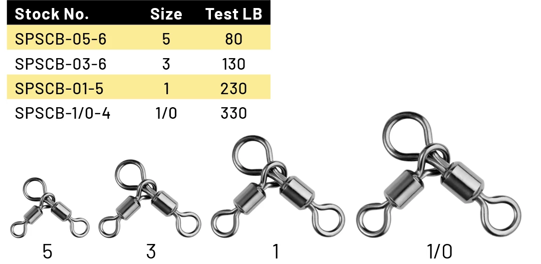 The Power Swivel Combo is a 3 way swivel that holds the bait at a 90 degree angle off of the bottom to keep the bait in the strike zone. SPRO Power Swivels are the smallest, strongest and most dependable swivel on the market.Â